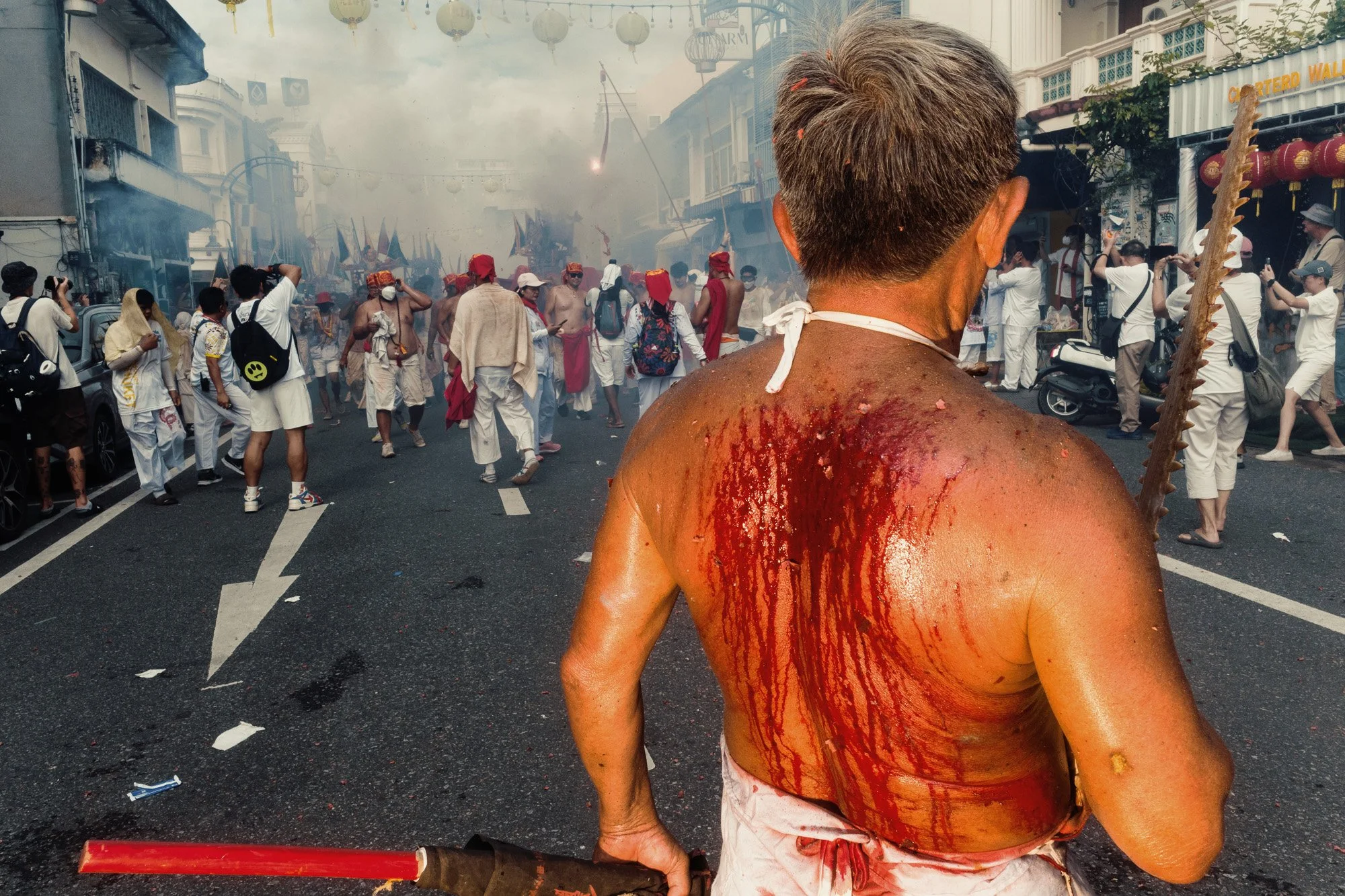Since this is one of the main shrines in Phuket, there were also a lot of photographers around. Most of them were focused on capturing the Masongs during the piercing rituals. Because of how crowded it was, I did not shoot much at first. It was difficult to get clean frames, and sometimes it makes more sense to wait rather than force shots.