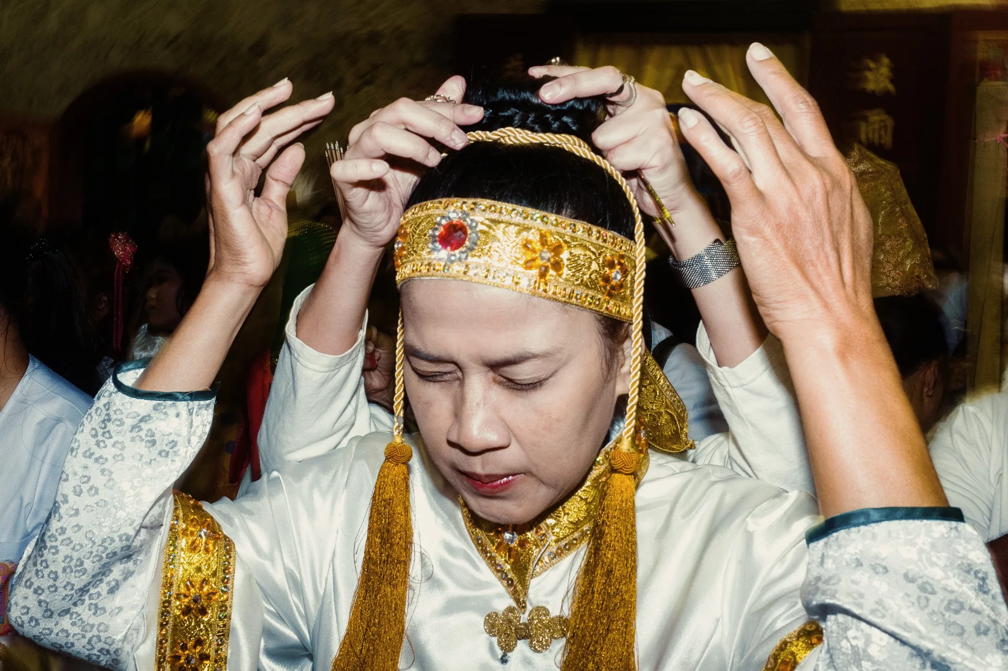This shrine felt very different from the others. We did not have much time to shoot, so we tried to make the most of it. There was an area specifically for female Masongs and it was very active. When I saw multiple hands touching a Masong’s head, I knew there might be a shot worth capturing.