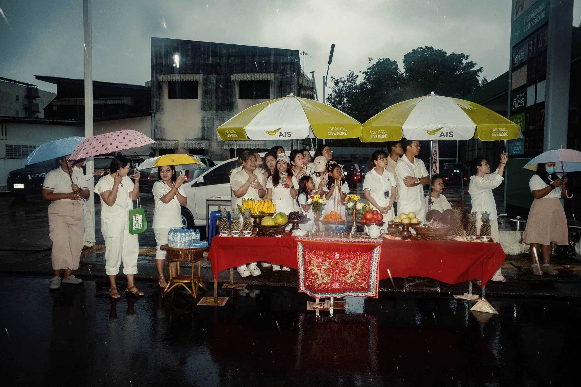 Kathu Shrine was only a few steps away from where the main crowd had gathered. It was packed with people, and more kept arriving. Outside, a designated area had been set up where Masongs could perform their ritual to step out of trance.